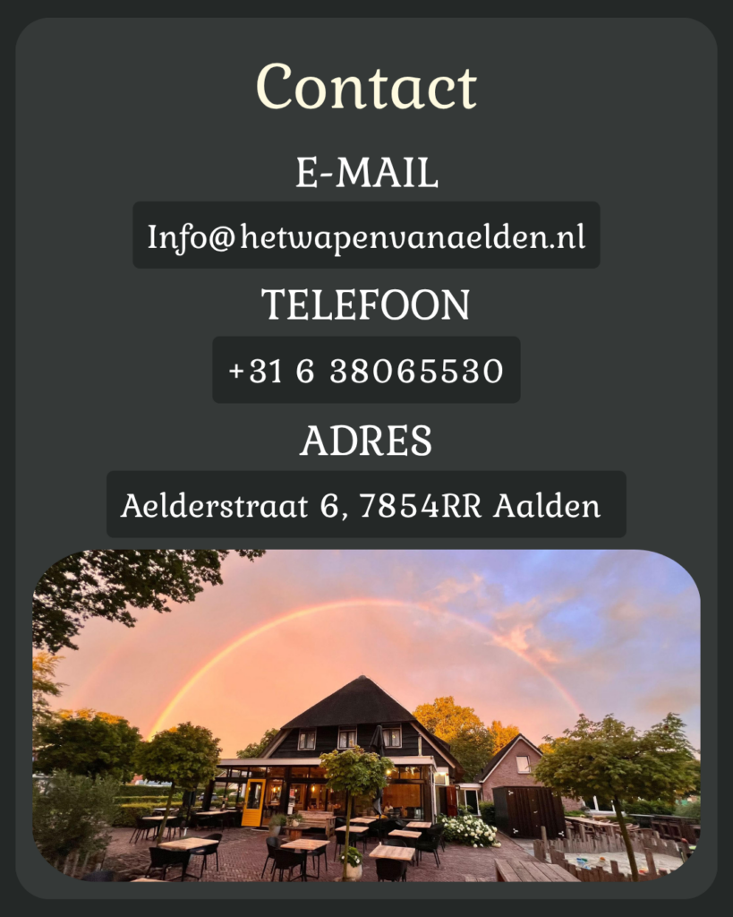 Geniet van heerlijke gerechten en gastvrijheid in een ontspannen sfeer bij het Wapen van Aelden.